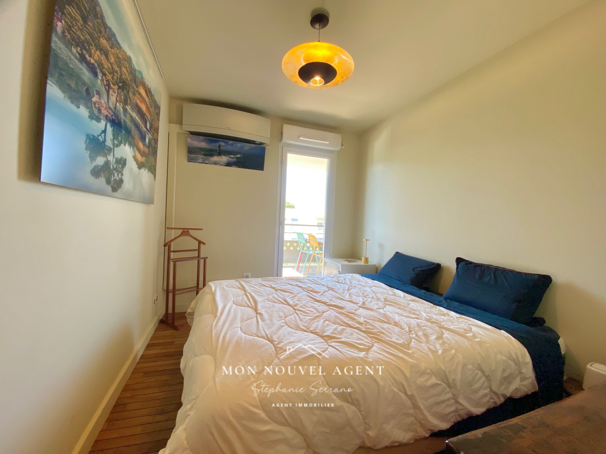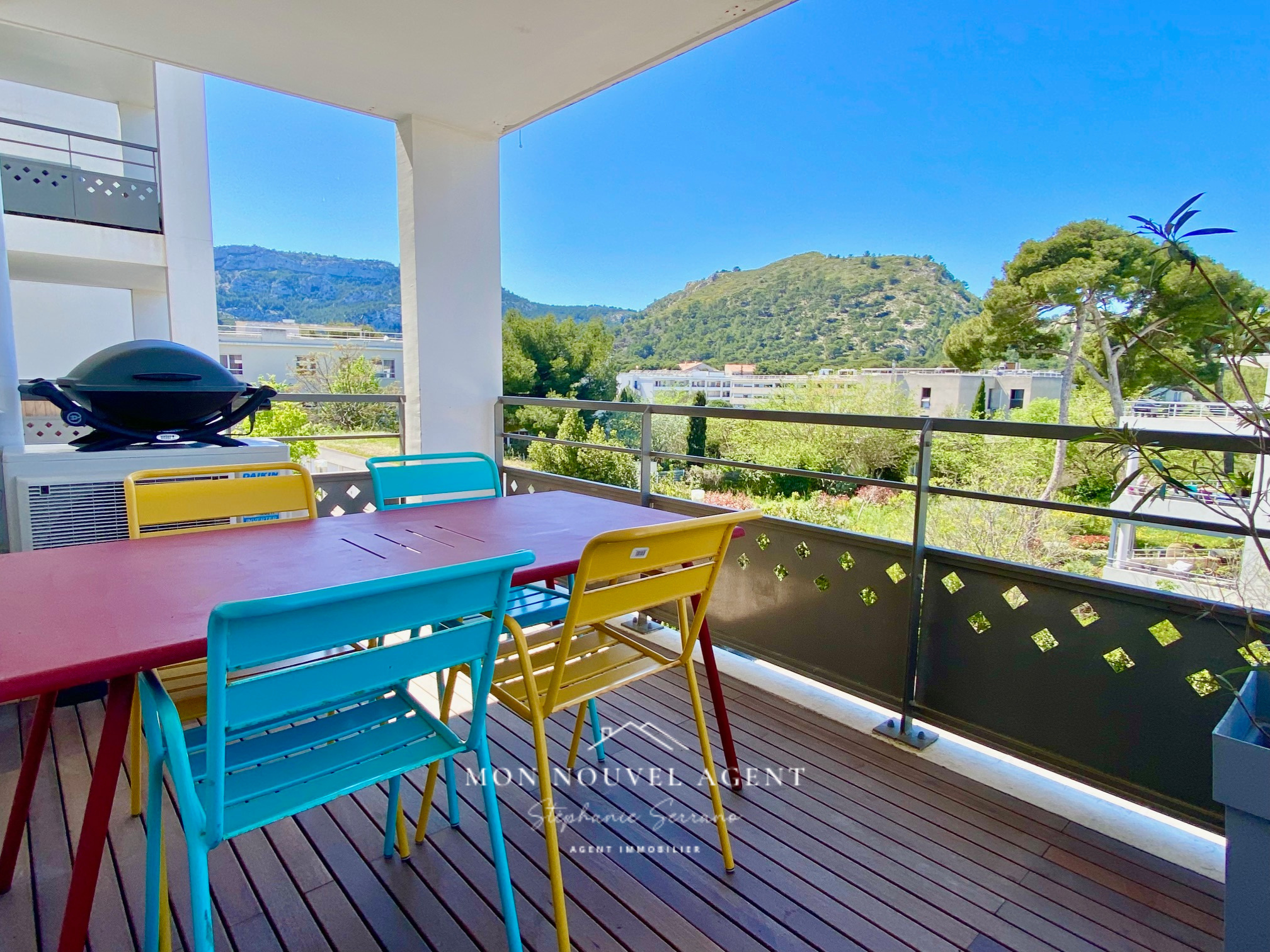 Au 2ème étage sur 4 avec ascenseur, cet appartement de 57.28 m² Loi Carrez se compose d'un hall d'entrée avec 2 grands placards, une cuisine ( entièrement équipée) ouverte sur séjour donnant sur une agréable terrasse ensoleillée de 11 m² et bénéficiant d'une superbe vue sur les collines, 2 chambres, une salle de bains aménagée avec sèche-serviettes, w-c séparés.